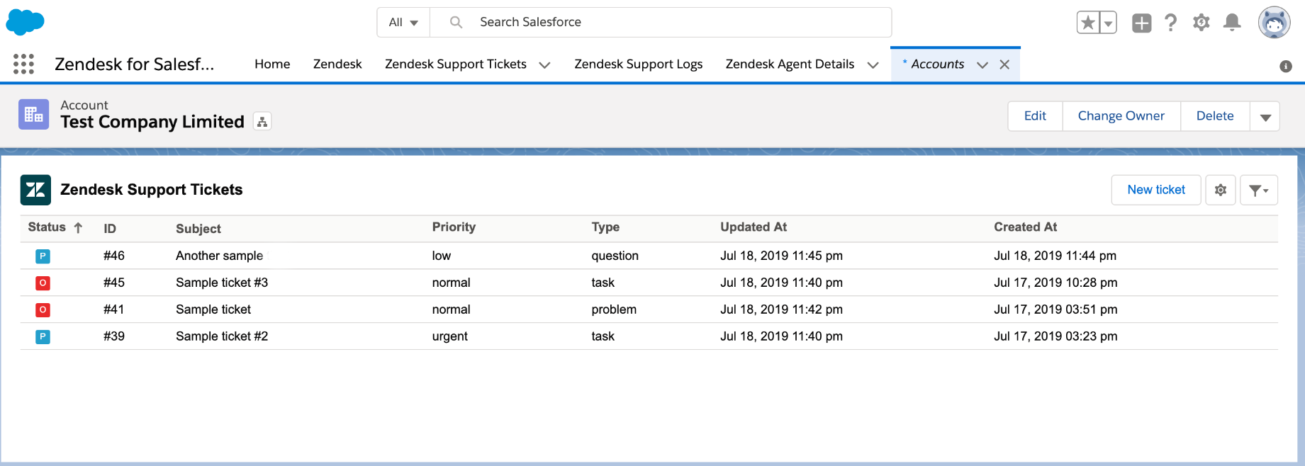 The key salesforce objects from where you would prefer to see associated Zendesk tickets are from Account, Contact, Opportunity, Lead and Case. We will illustrate the steps from an Account perspective. The steps are the same for other objects.